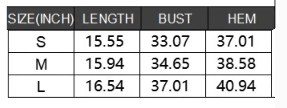 SEE SIZING CHART in photos. For sizing yourself most accurately please use a tape measure. Note XL is coming I’m just getting the exact #’s on that first!