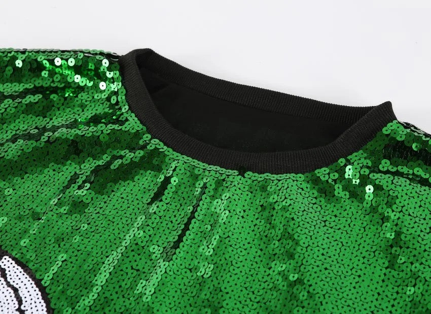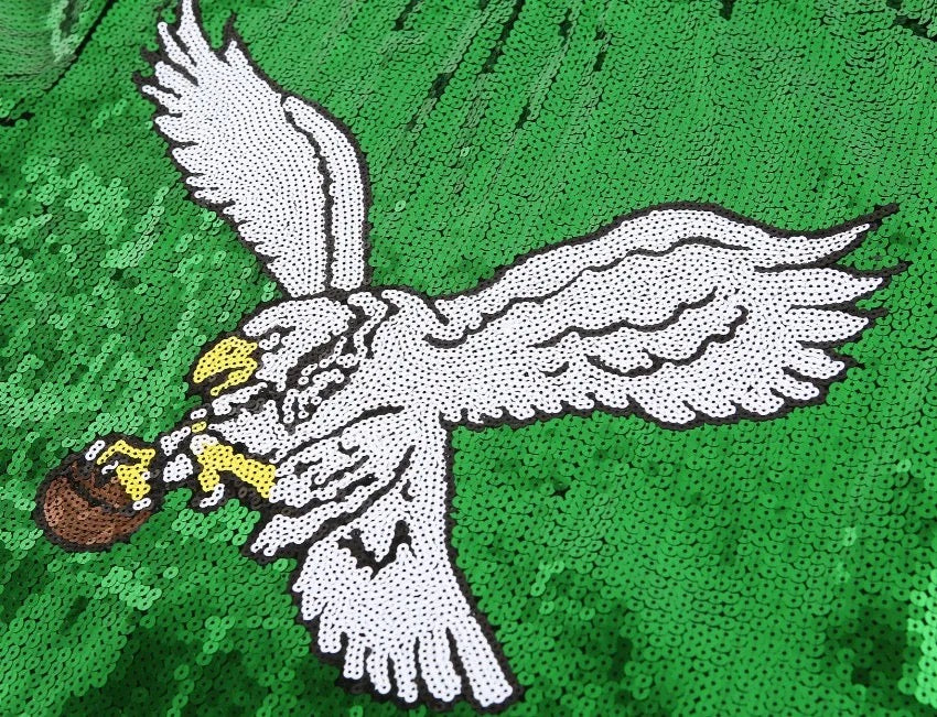 Cheer on your favorite team in style with the *PRE ORDER* SEQUIN THROWBACK KELLY GREEN EAGLES DRESS!!!! A one size oversized dress crafted with sparkling sequins and designed for game day, this dress will have you looking fabulous as you show off your team spirit. Place your pre order today and be the best-dressed fan in the stands!