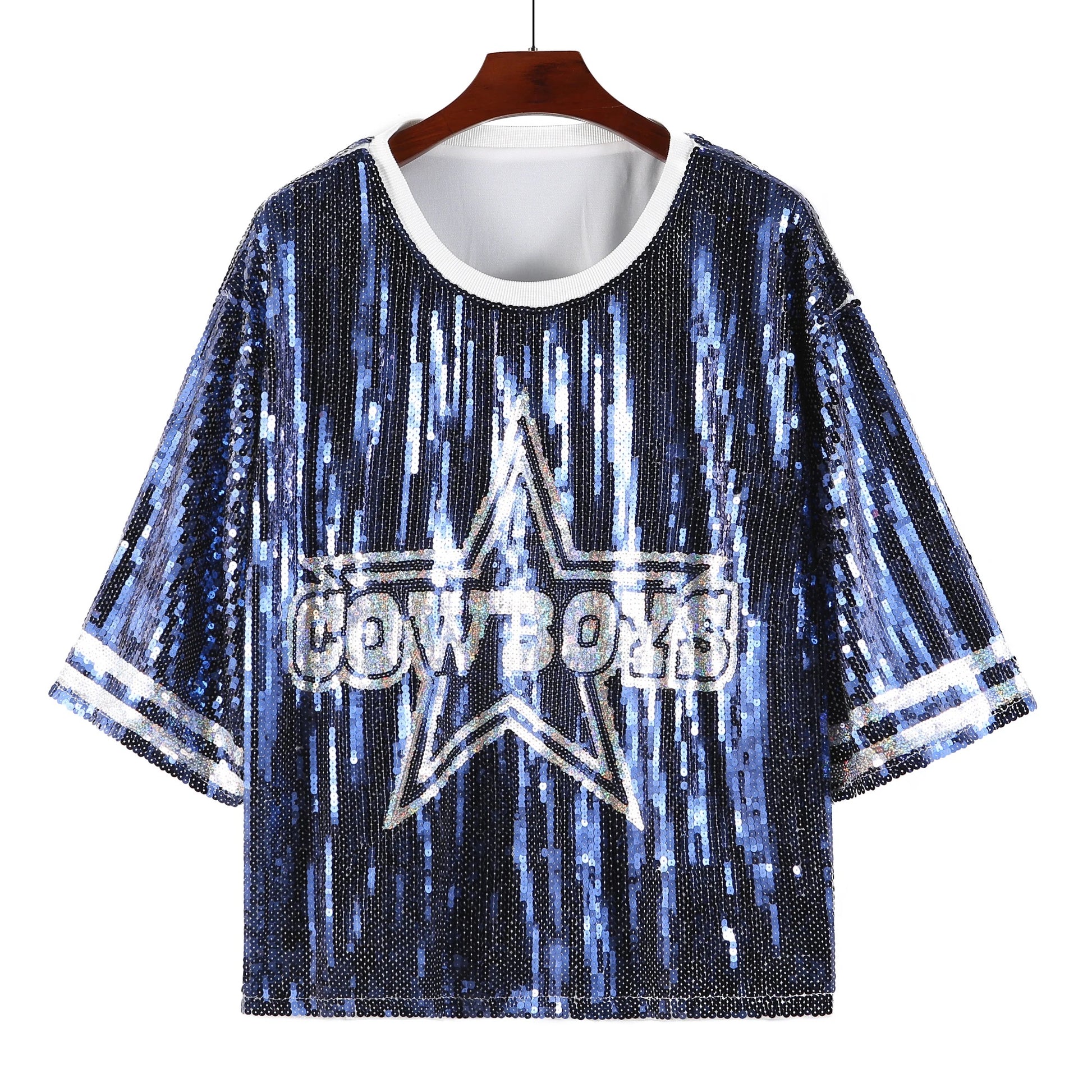 Cheer on your favorite team in style with the *PRE ORDER* SEQUIN COWBOYS PLUS TOP!!!! A one size oversized dress crafted with sparkling sequins and designed for game day, this dress will have you looking fabulous as you show off your team spirit. Place your pre order today and be the best-dressed fan in the stands!