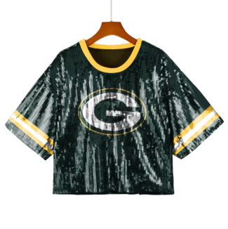 Cheer on your favorite team in style with the SEQUIN Green Bay Packers Top!!!! A one size oversized shirt crafted with sparkling sequins and designed for game day, this Jersey shirt will have you looking fabulous as you show off your team spirit. Place your pre order today and be the best-dressed fan in the stands!