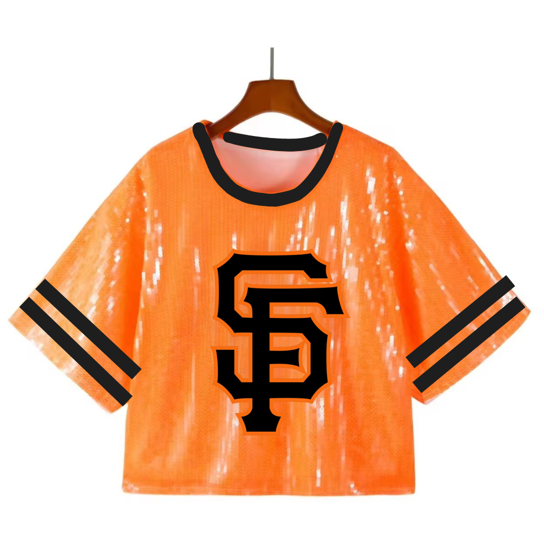 Cheer on your favorite team in style with the SEQUIN SF GIANTS JERSEY SHIRT!!!! A one size oversized shirt crafted with sparkling sequins and designed for game day, this Jersey shirt will have you looking fabulous as you show off your team spirit. Place your pre order today and be the best-dressed fan in the stands!